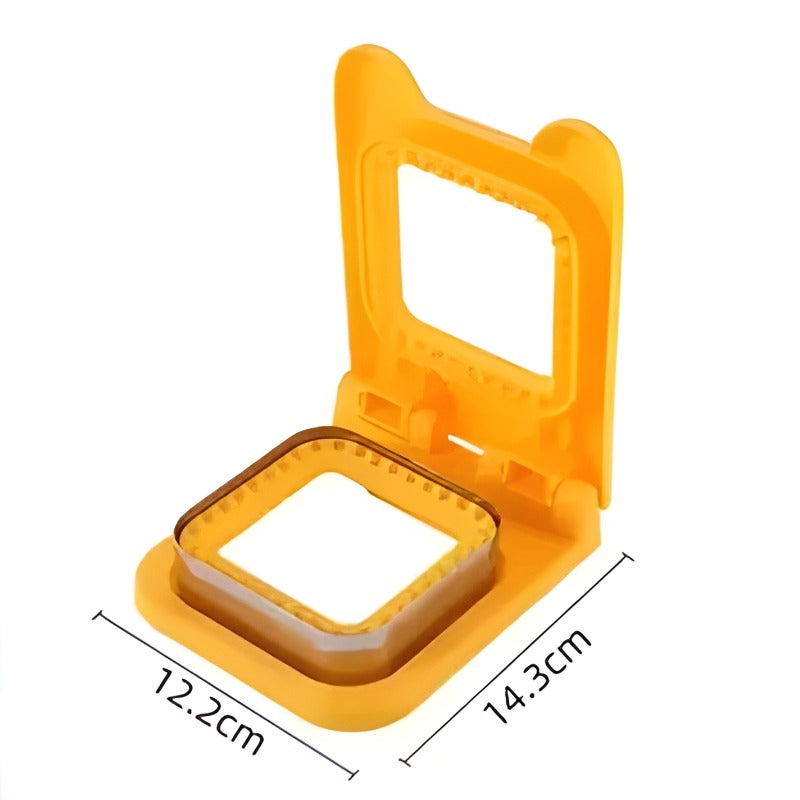 • Simply place your filling and bread, press the tool down firmly, and lift to create a sealed, crust-free pocket sandwich.