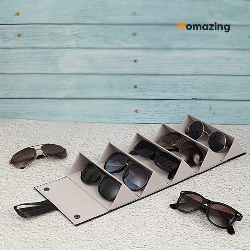 • Sunglasses organizer roll size is about 17x11.5x11.5cm/6.69x4.53x4.53 inch, and 5 slots independent space.
