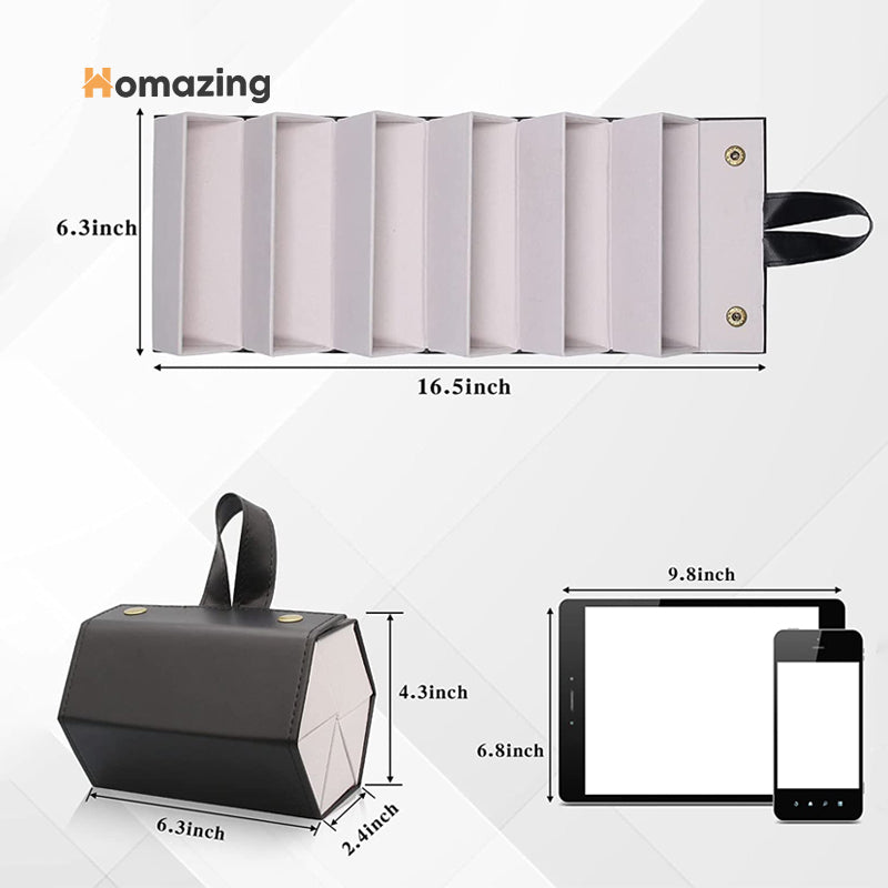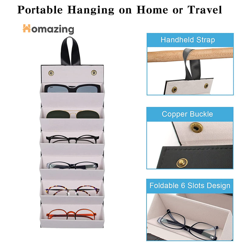 • Glasses organizer can be rolled up and has a handle. Hanging design, can be hung in the wardrobe, behind the door or on the shelf.