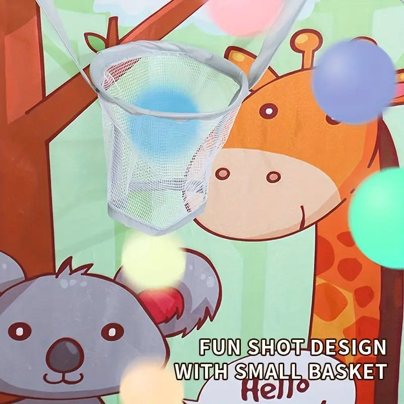 Jungle-Themed Fun for Toddlers- Bright and colorful animal designs (giraffe, koala, monkey, birds) spark imagination and make playtime exciting in this jungle ball pit for toddlers and babies.