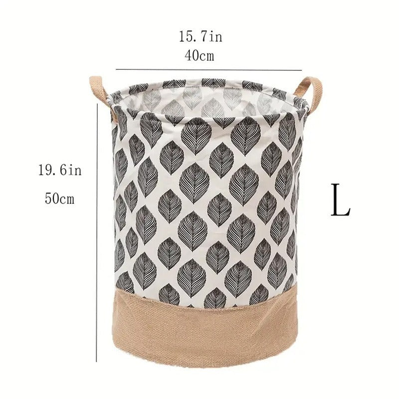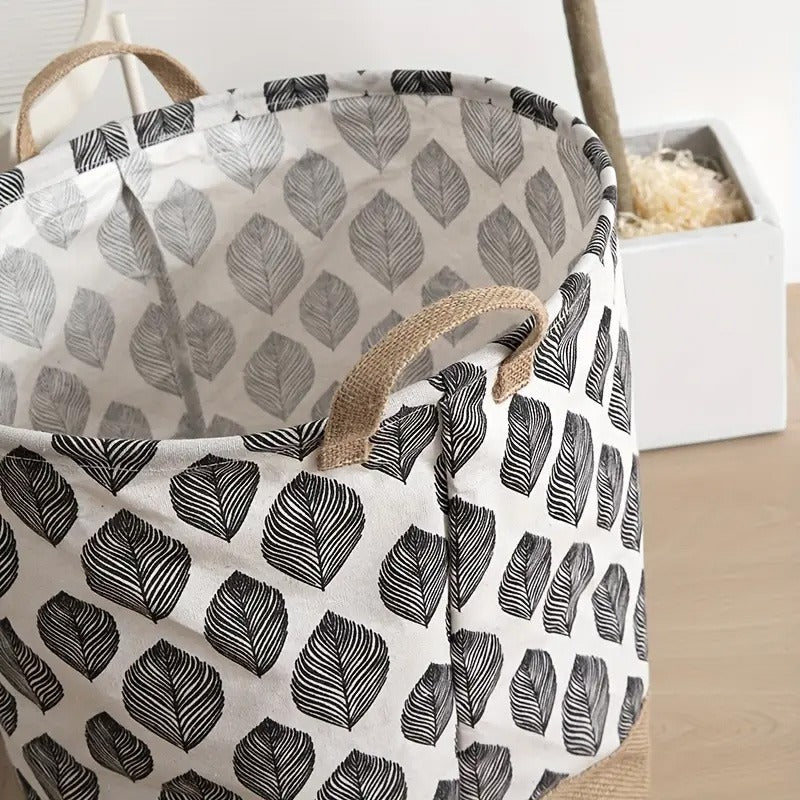 Two-Tone Foldable Laundry Basket - Leaves Pattern