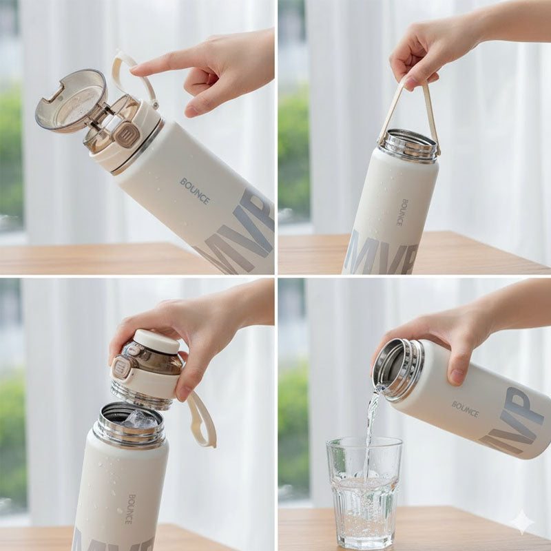 BOUNCE Sport Water Bottle Insulated With Pop-Up Straw Lid 600 ML