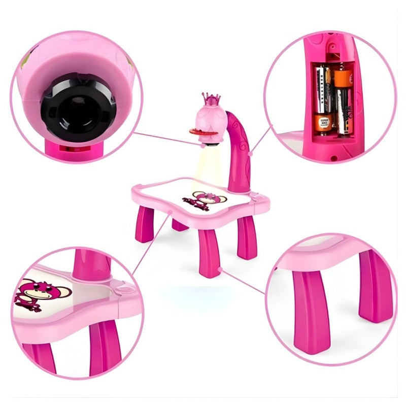 Built-in projector allows tracing, drawing, and coloring for interactive learning.